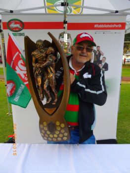 “I grew up in Alexandria, and attended my first game as a 4 year old in 1947/8 and I have been a loyal “Bunny” since. I played some games for the South Sydney Fernleighs, who I don’t think exist any more.” Wayne Pride.