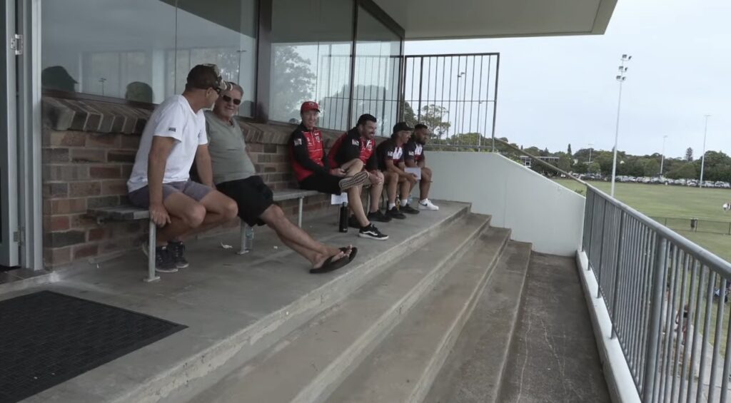 On camera we expected to see Souths coaches John Sutton, Eddie Paea and Sam Burgess. We did however get more than we bargained for and eventually captured a star studded lineup.